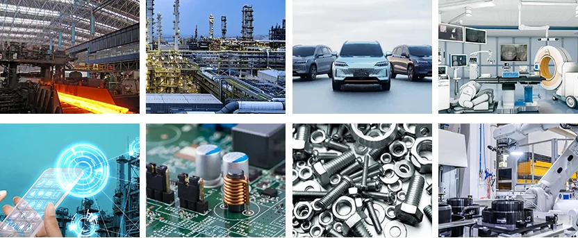 Nous avons désormais établi des partenariats étendus avec des clients de divers secteurs, notamment l'acier, la chimie, l'automobile, le médical, les communications, l'électronique, la quincaillerie, la fabrication de machines, les nouvelles énergies, l'alimentation et les boissons, l'ameublement et l'emballage.