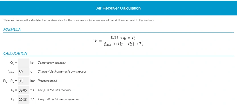 Minimiser les fluctuations/chutes de pression : le réservoir de réception d'air est utilisé pour minimiser les fluctuations de pression qui peuvent affecter le processus de production et la qualité du produit. Lors du choix du réservoir de réception d'air approprié pour votre compresseur, deux valeurs doivent être notées : la pression de sortie du compresseur et les exigences de l'application au point d'utilisation. Veuillez noter que l'air comprimé stocké dans le réservoir de réception d'air n'est utile que lorsque sa pression est suffisante pour soutenir le processus correspondant. Par conséquent, la durée pendant laquelle le réservoir de réception d’air fournit du gaz à la pression requise par l’utilisateur final/l’équipement (en minutes) doit être prise en compte.