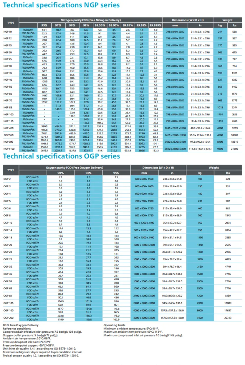 La technologie PSA garantit un excellent retour sur investissement. Les tamis moléculaires en carbone garantissent une grande pureté.