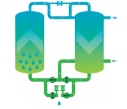 Pendant qu’une tour est en mode adsorption, l’autre est en mode régénération. Le gaz de régénération nécessite une certaine proportion d'air comprimé fini.
